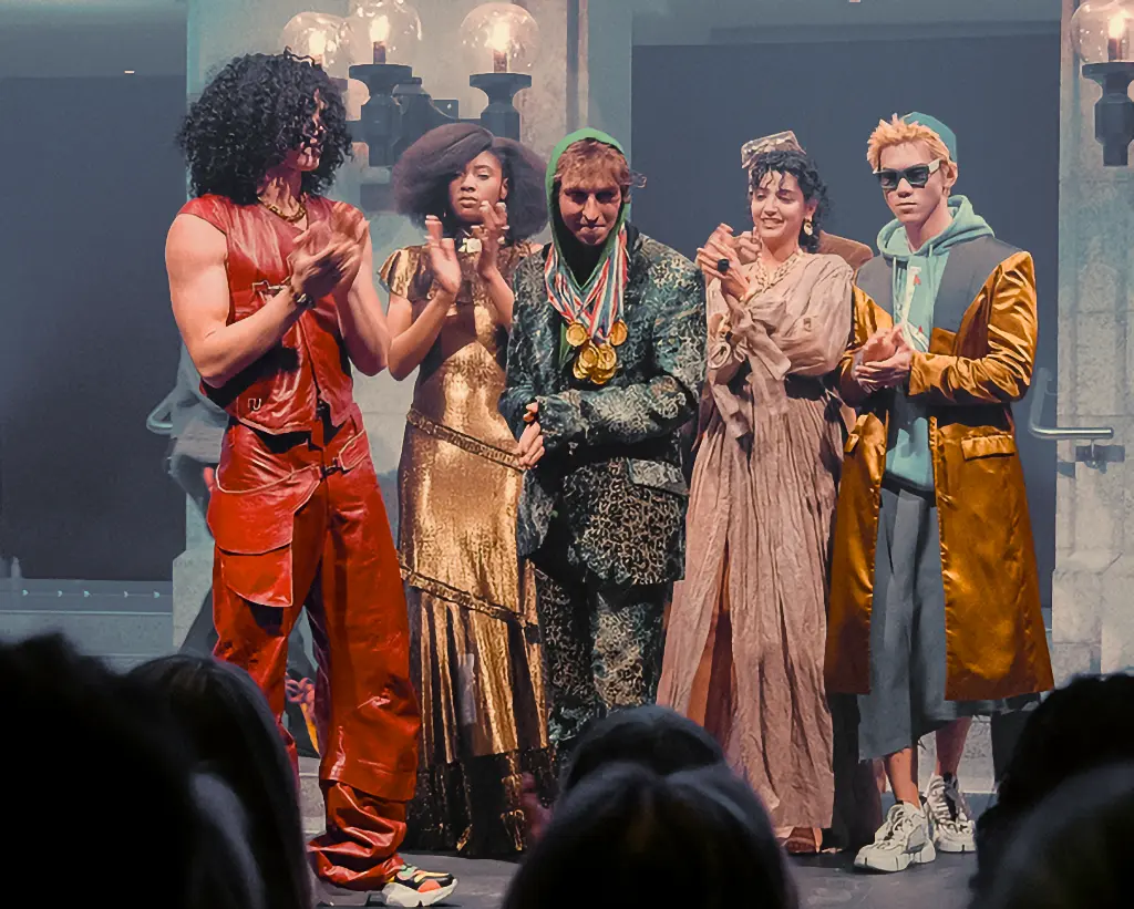 From the beginning, Paradis Urbain was conceived as fashion theatre rather than a traditional runway show. Instead of a continuous flow of models, the production was structured in three acts, each anchored to a central theme: courage, creativity, and couture.